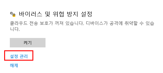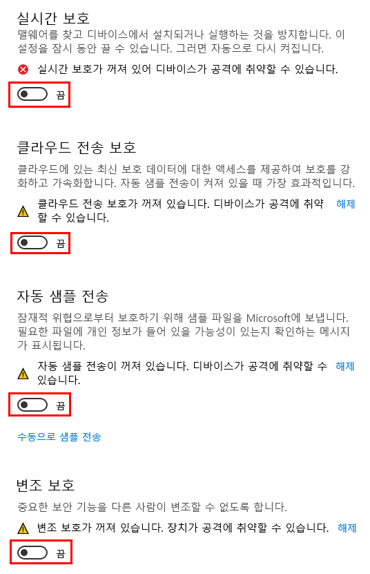 이렇게 끔으로 설정을 하셨다면 WINDOW 실시간 보호 설정은 잘 하신 겁니다.