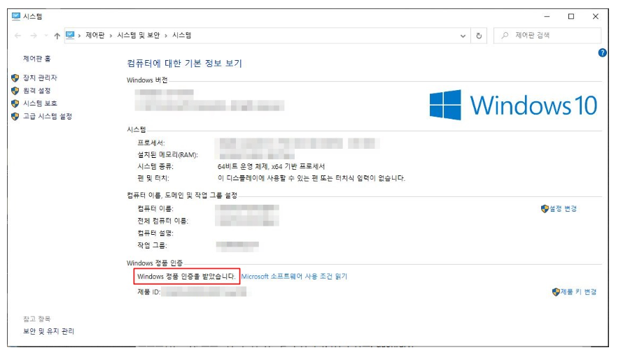 이제 window 정품 인증을 된걸 확인하실 수 있습니다.