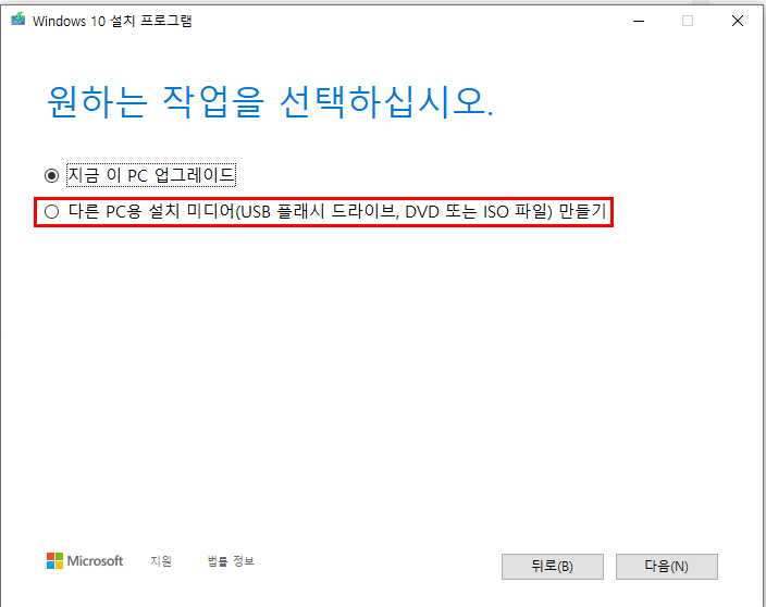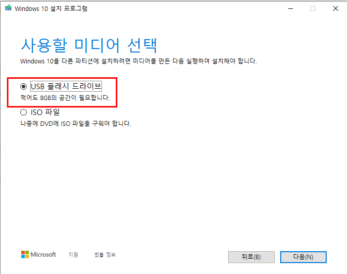 둘다 모두를 선택하여 USB 설치 미디어를 만들 수 있습니다.