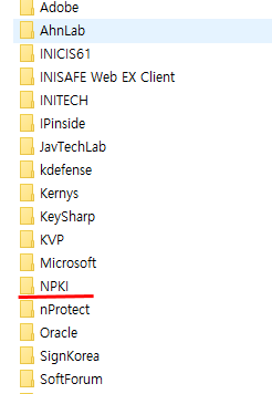 여러 폴더중에 NPKI 라는 폴더가 보이실겁니다.