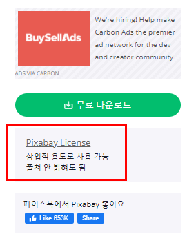 픽사베이 라이선스 관련해서는 위와같이 상업적 용도로 사용 가능하며